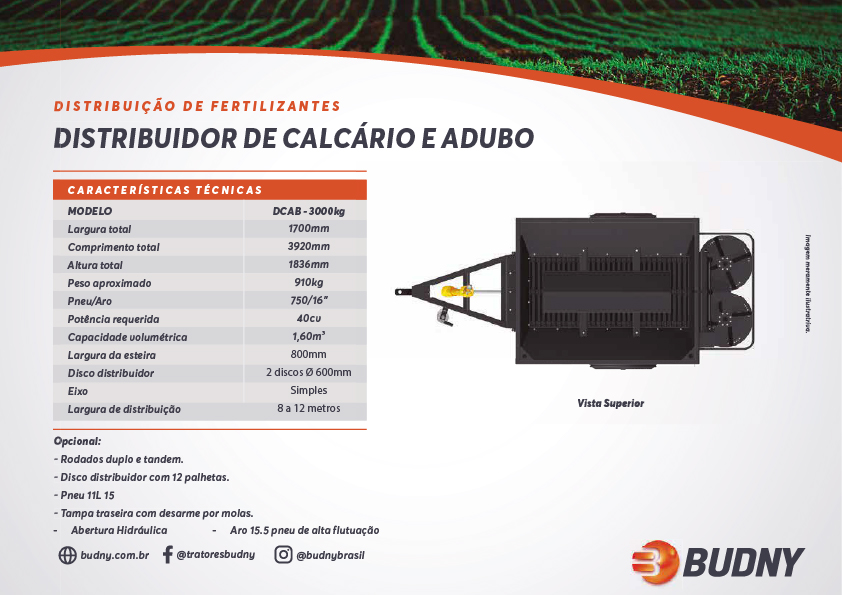 DISTRIBUIDOR DE CALCÁRIO E ADUBO 3000 KG